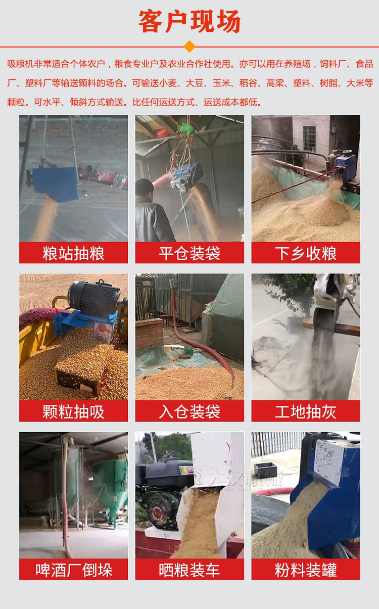 吸糧機(jī)可水平、斜向、垂直輸送物料,單機(jī)獨(dú)立完成輸送任務(wù)。