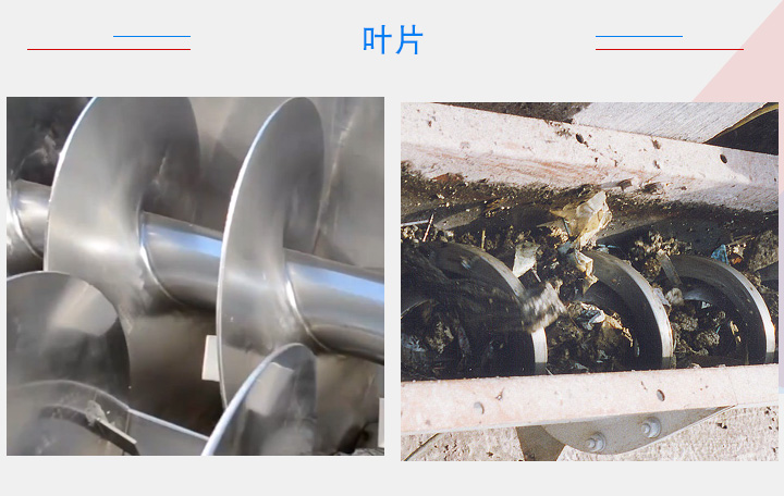 不同性質(zhì)的物料對(duì)螺旋輸送機(jī)的葉片形狀、材質(zhì)有不同的要求。針對(duì)一般物料,可選擇碳鋼材質(zhì)的有軸葉片,對(duì)于一些粘性大,纏繞性物流,就需要選擇無軸螺旋葉片,對(duì)衛(wèi)生環(huán)境有要求的物料,葉片一般建議選擇不銹鋼材質(zhì),磨琢性強(qiáng)的物料則要選擇錳鋼材質(zhì)的葉片。